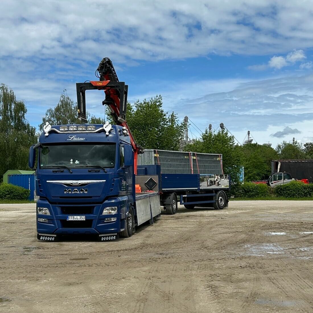 Wir sind Ihr zuverlässiger Partner für den Transport von Baumaterialien mit Kran-Gliederzügen im süddeutschen Raum.
